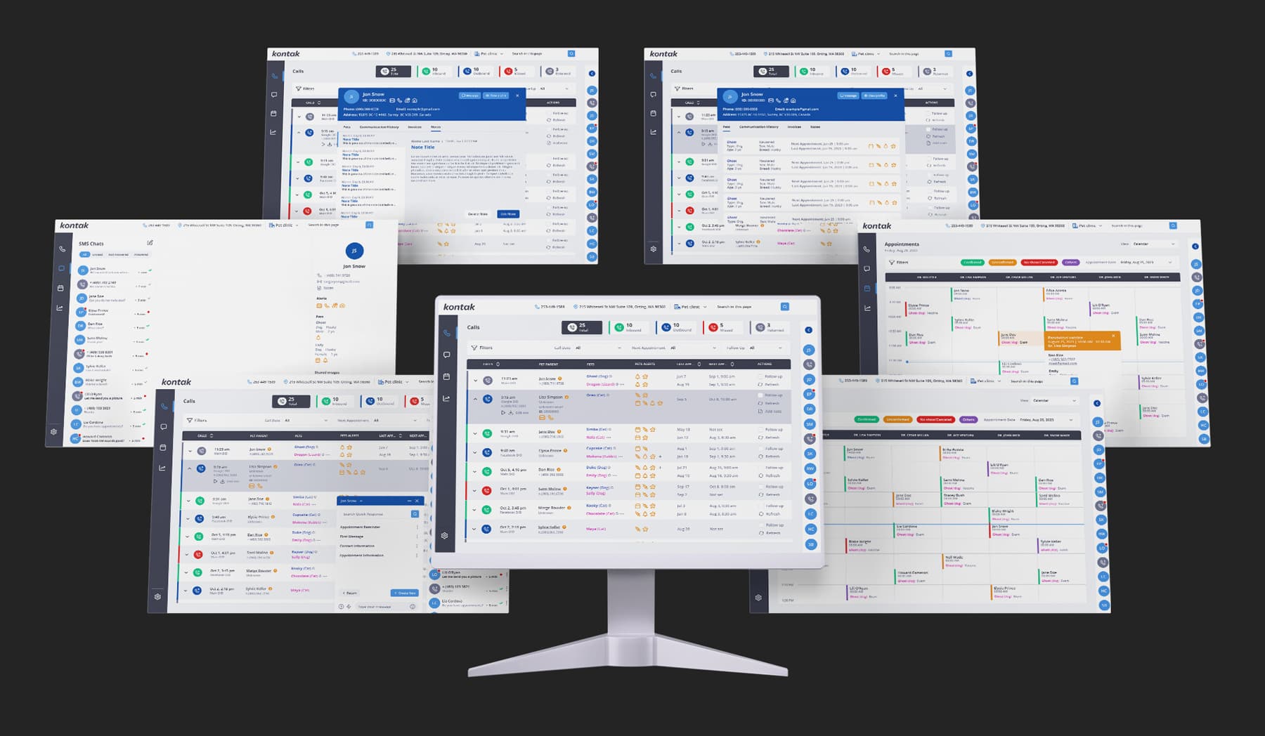 Aplicación web diseñada para clínicas veterinarias que centraliza la gestión de clientes, mascotas y comunicación con pacientes. El sistema integra monitoreo de llamadas en tiempo real, historial clínico de mascotas, agenda de citas y herramientas de comunicación con clientes mediante SMS, permitiendo a la clínica dar un seguimiento más eficiente a cada caso.
